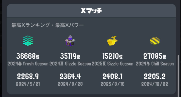 スプラ3からスプラを始めましたが、やり始めるときに一つの目標としてXP2500になるという目標を掲げていました。