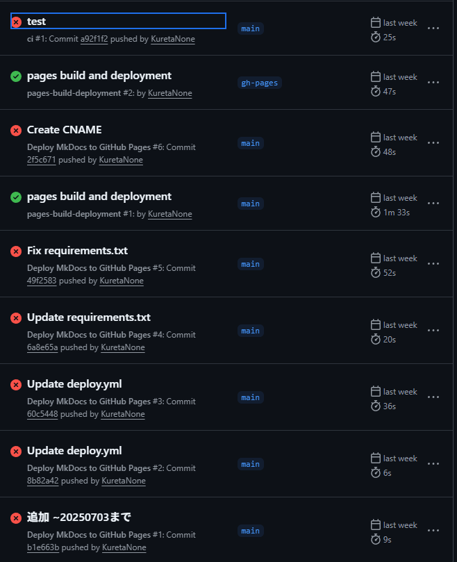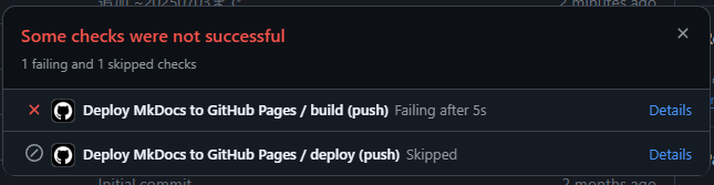 さぁ、 以上の設定をすると、mainブランチにプッシュしたときに自動的にMkDocsのビルドが行われます。